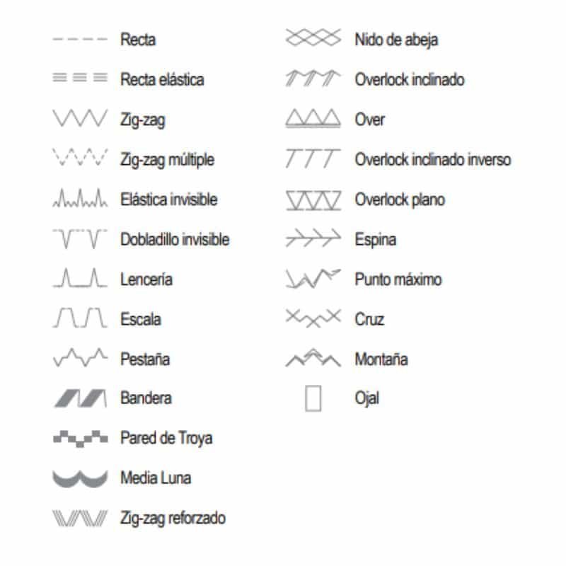 - 23 puntadas – Puntadas utilitarias, flexibles y decorativas.